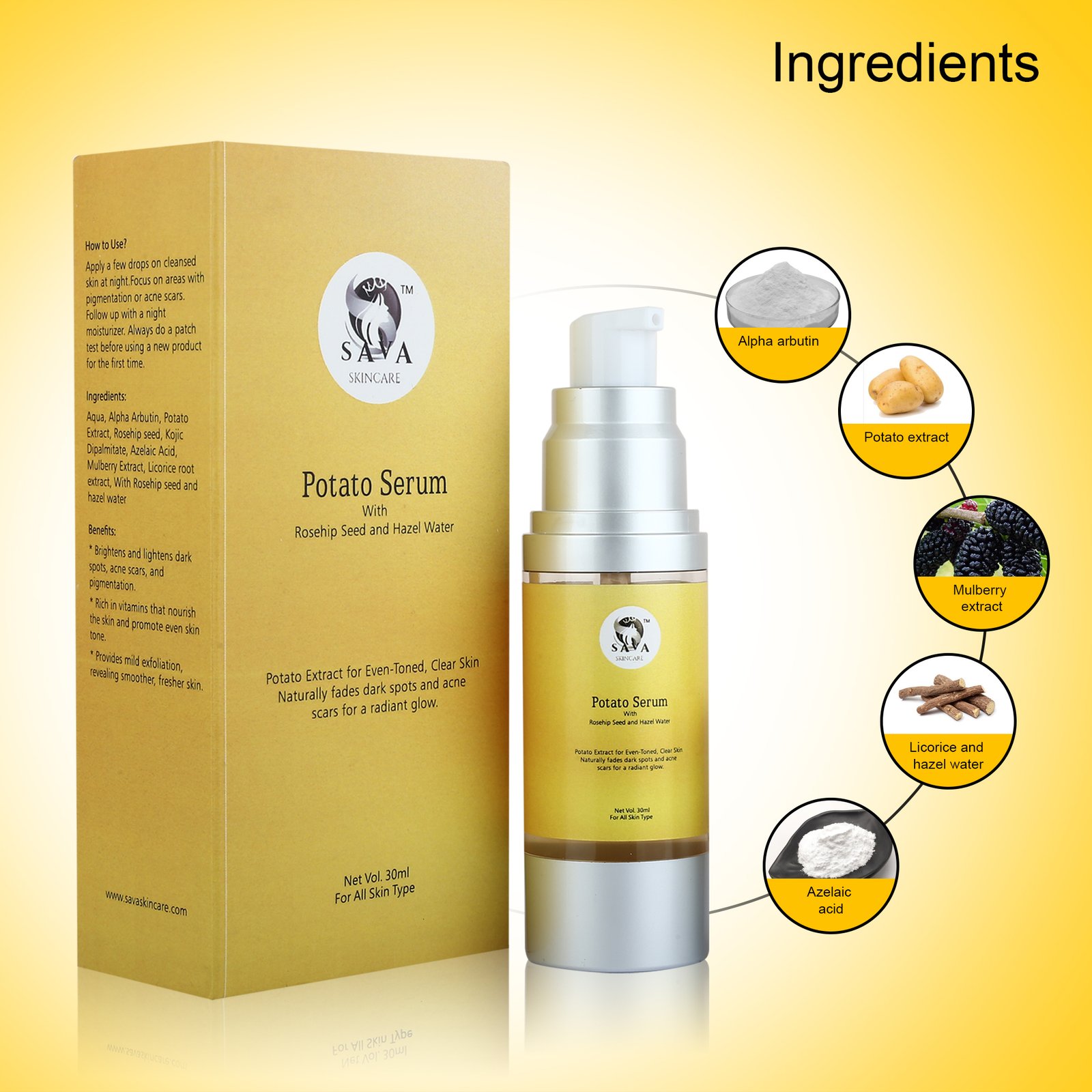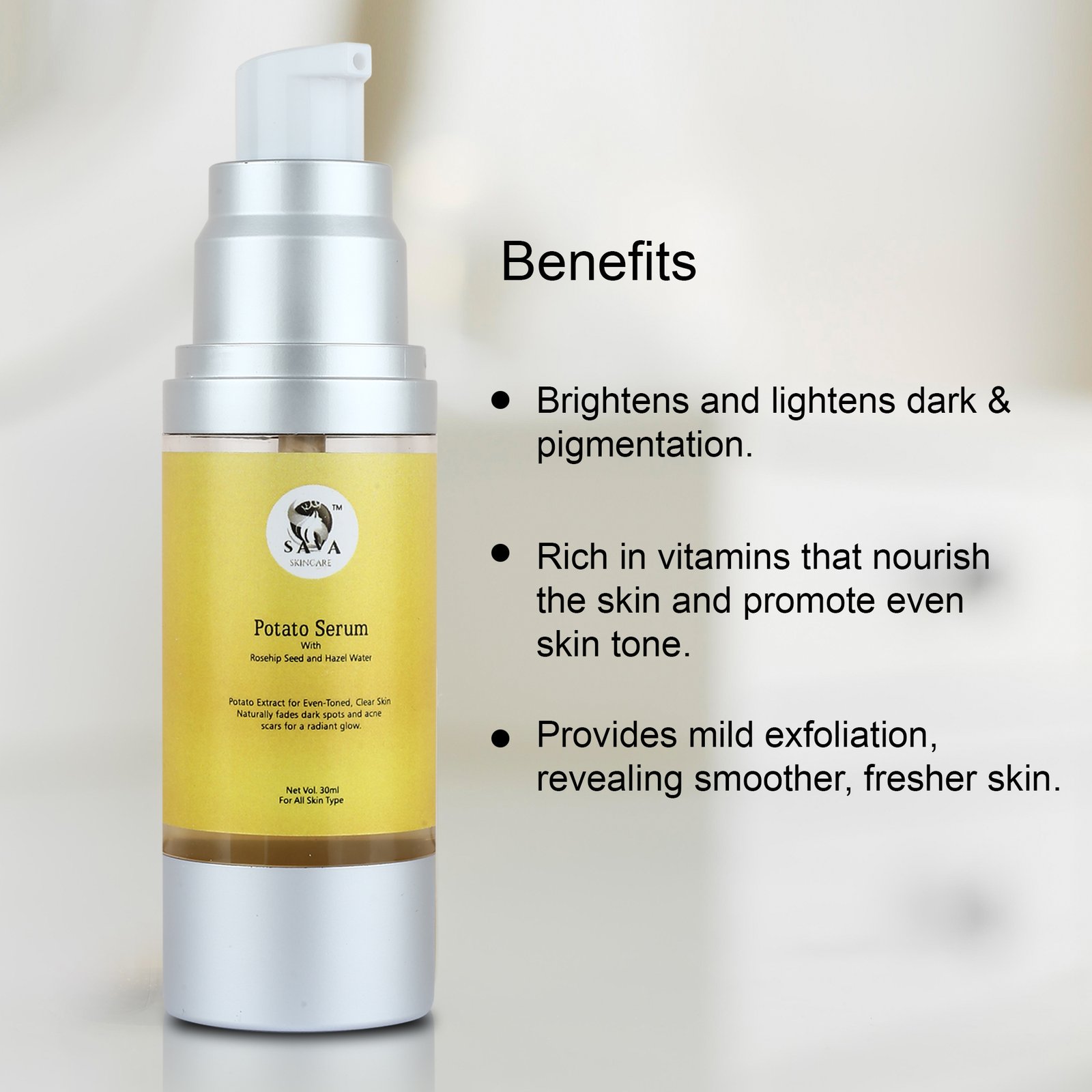 Brightens Skin Tone: Potato extract is rich in natural enzymes and vitamins, particularly Vitamin C, which helps lighten dark spots, hyperpigmentation, and uneven skin tone for a brighter complexion.