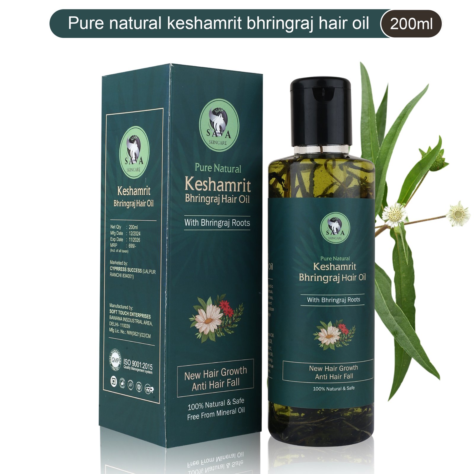 Pure Natural Keshamrit Bhringraj Hair Oil is a potent, natural hair oil formulated with the nourishing power of Bhringraj, a revered herb known for its revitalizing properties. This hair oil blends traditional Ayurvedic ingredients to promote healthy, strong, and lustrous hair. It helps address a variety of hair concerns, including hair fall, dandruff, premature graying, and dry or damaged hair, making it an all-in-one solution for improving hair health and appearance.