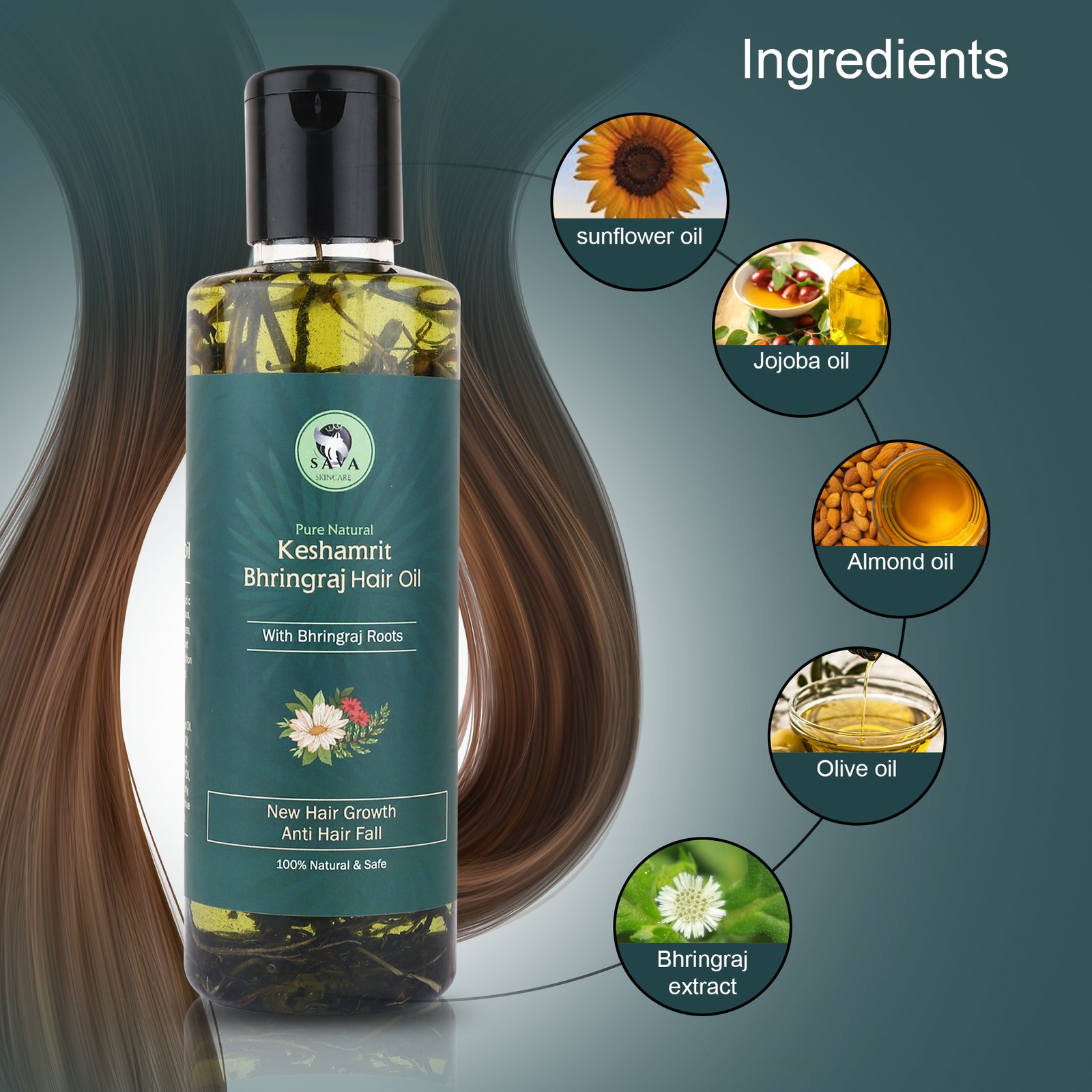Natural & Chemical-Free: Made with pure, natural ingredients, Keshamrit Bhringraj Hair Oil is free from harmful chemicals, parabens, and synthetic additives, ensuring a safe and gentle experience for your hair.