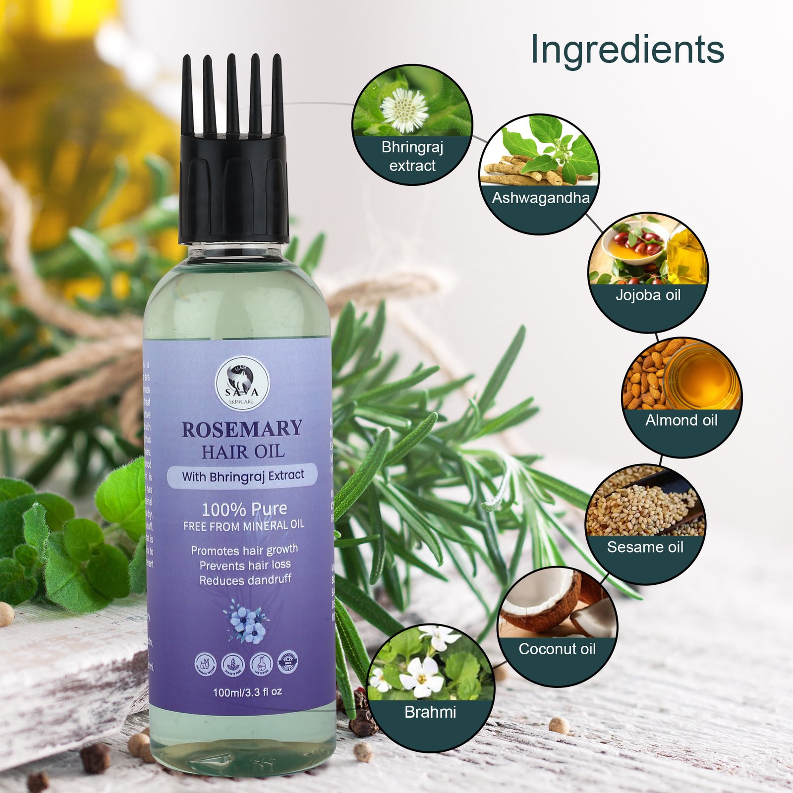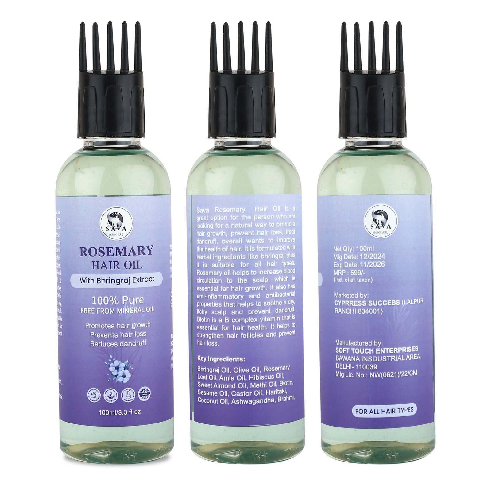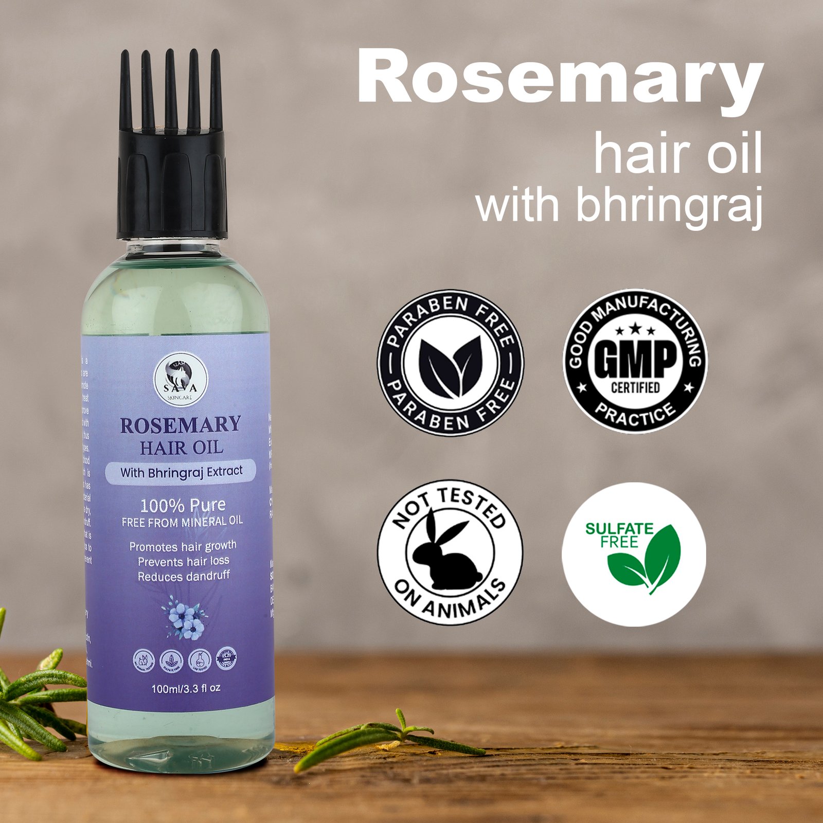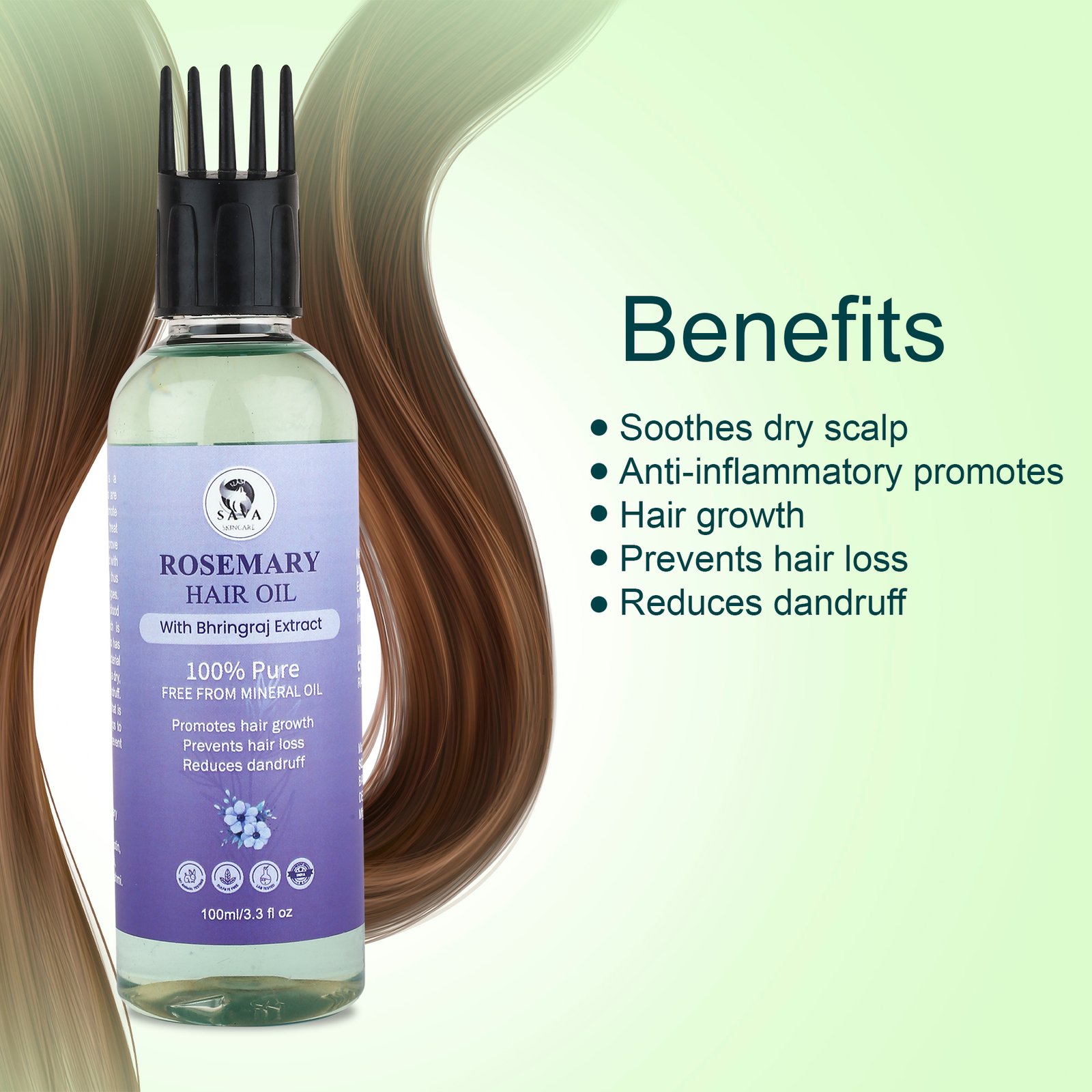 Improves Scalp Health: Rosemary oil has natural antimicrobial and anti-inflammatory properties that help soothe an irritated scalp, reduce dandruff, and alleviate dryness or itching.